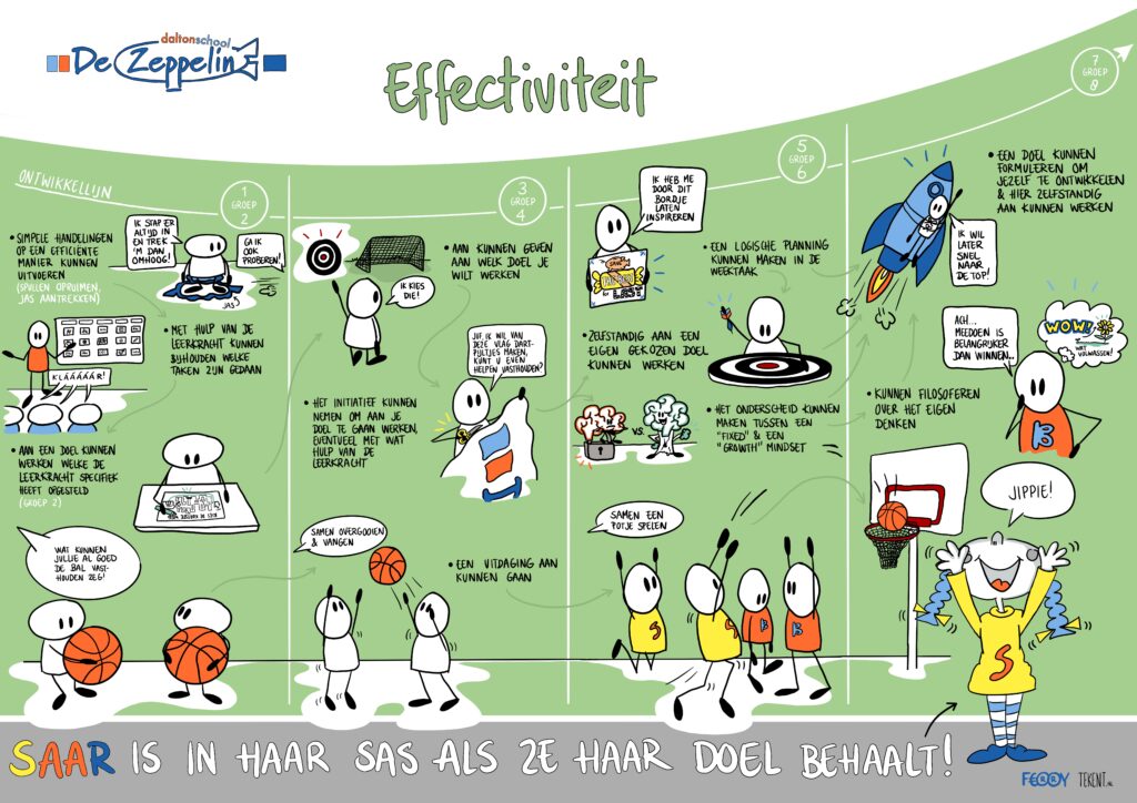 Effectief onderwijs houdt in dat onze kinderen bewust werken aan gestelde leerdoelen. Dit doen we door bovenstaande pijlers op de juiste momenten in te zetten. Zo werken de kinderen, al dan niet samen, aan de leerdoelen en dragen ze verantwoordelijkheid voor het behalen hiervan. Daarnaast worden de leerdoelen, zo nodig, aangepast aan de leerbehoeften van ieder kind en zorgt de inzet van de kinderen, op een effectieve manier, voor het bereiken van het beoogde resultaat.